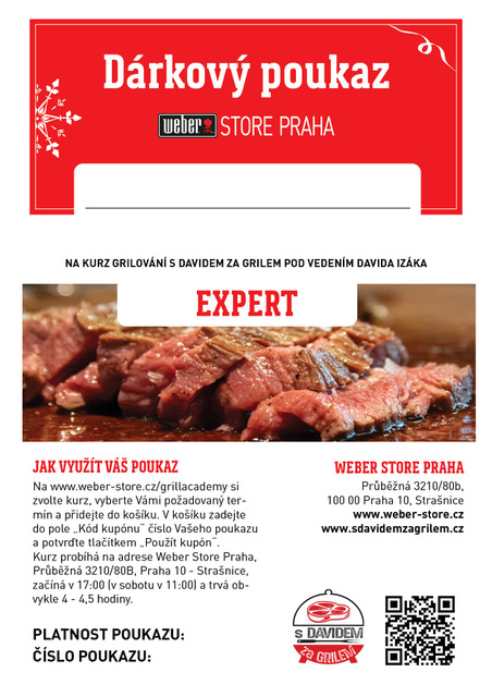 Z kurzu si krom vědomostí odnesete grilovací zástěru WEBER®, praktickou příručku se všemi recepty, které jste se na kurzu naučili a certifikát o absolvování kurzu. Kurz začíná v 17:00 (v sobotu v 11:00) a trvá obvykle 4 až 4 a půl hodiny na adrese Weber Store Praha, Průběžná 3210/80B, 100 00 Praha 10 Strašnice.