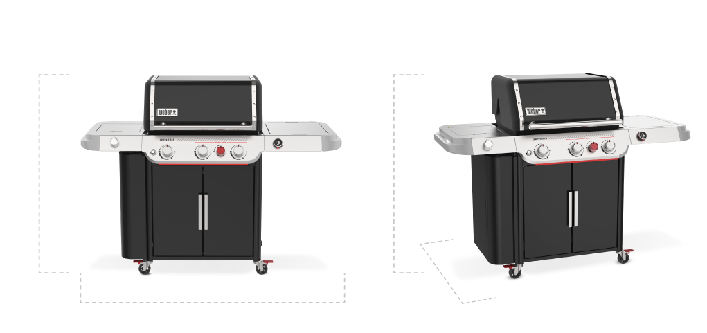 Mějte pomůcky, koření a naporcované jídlo po ruce připravené ke grilování a podávání díky velkým, přizpůsobitelným postranním stolkům, které se hodí k řadě vkládacího a nacvakávacího příslušenství Weber Works (prodává se samostatně).