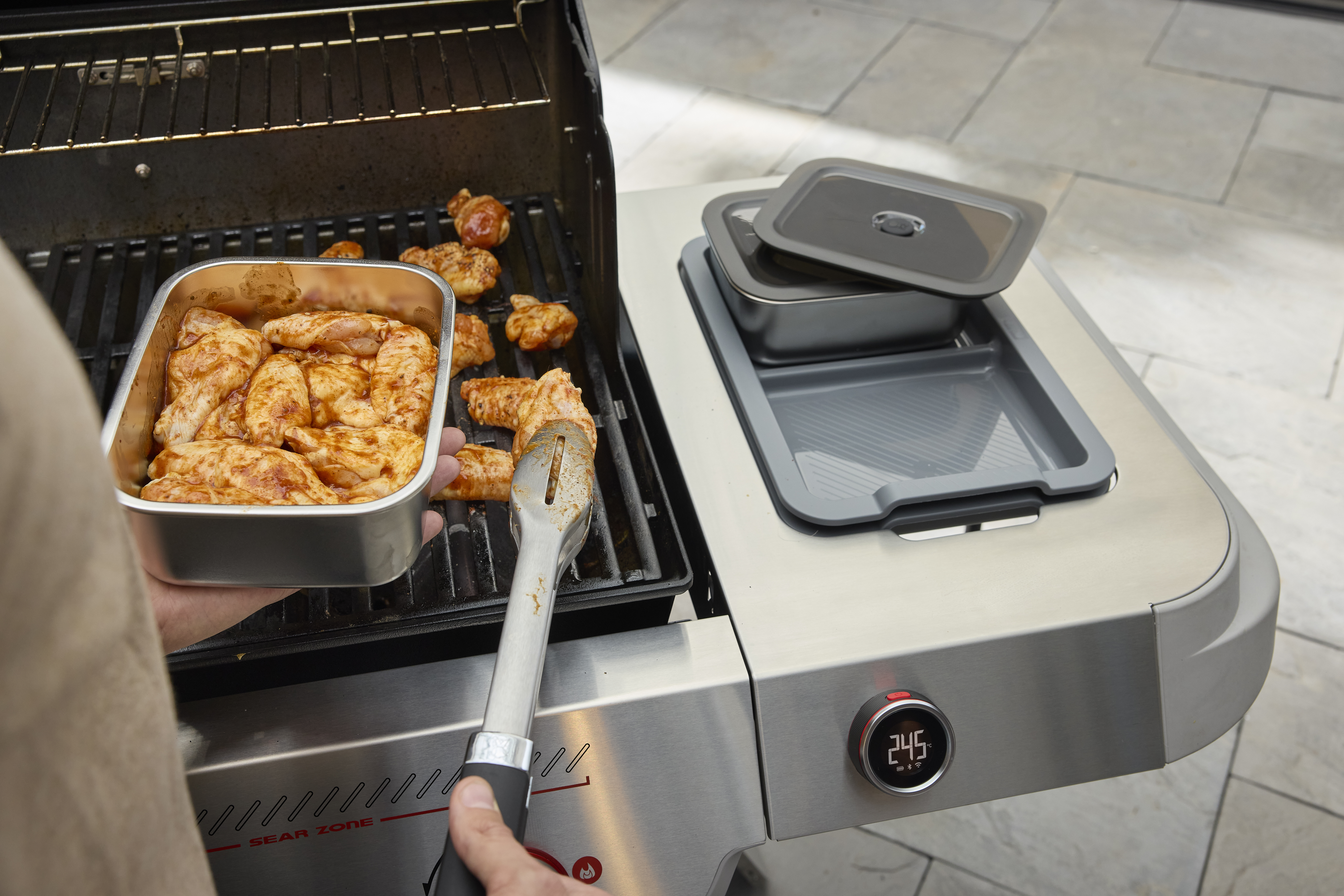 Posuňte svou zábavu na novou úroveň a vytvořte nezapomenutelné jídlo s inovovaným výkonným chytrým 3hořákovým plynovým grilem Genesis® EX-325W se zónou Sear Zone a digitálním teploměrem s Wi-Fi®.