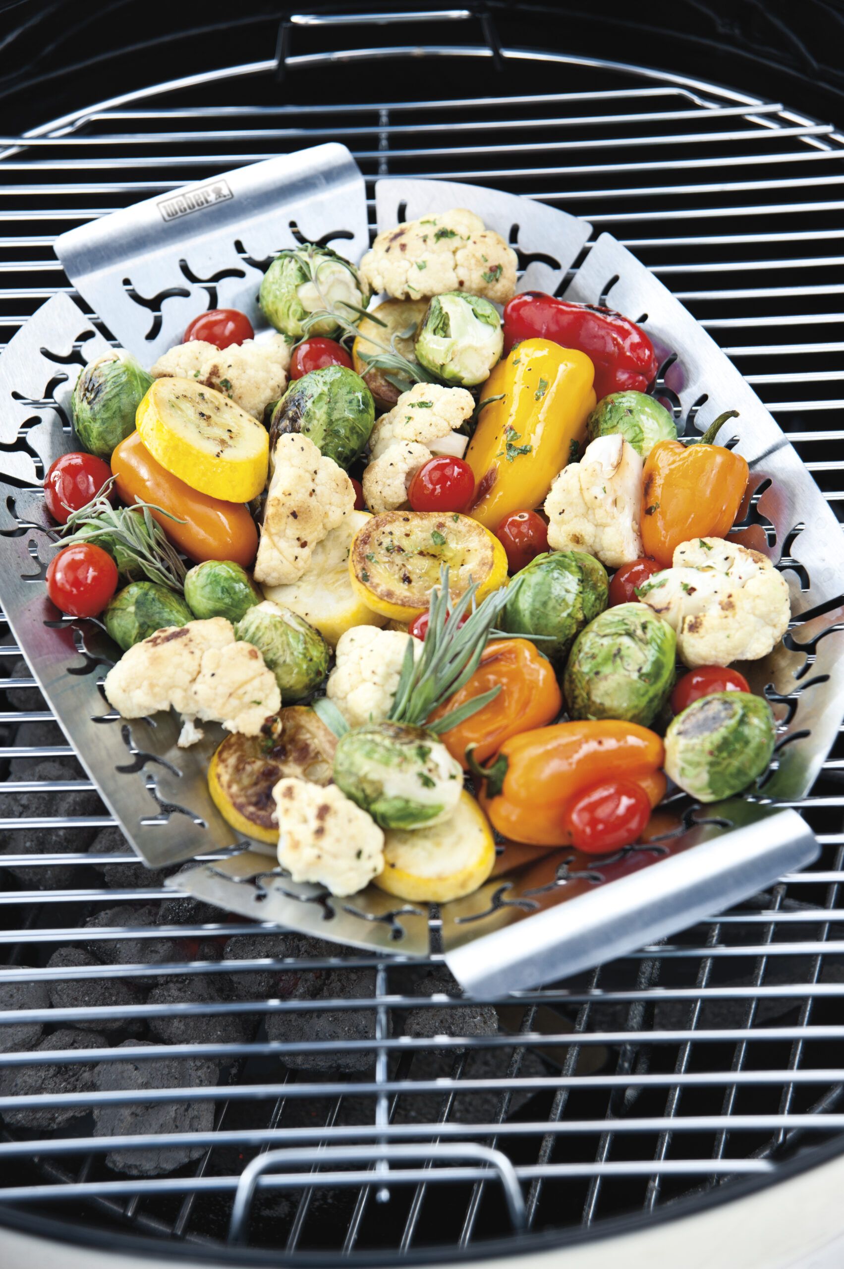 Grilovací koš Premium pojme spoustu zeleniny, ovoce nebo krevet, zatímco dodává Vašemu jídlu nezaměnitelnou chuť kouře z grilu.