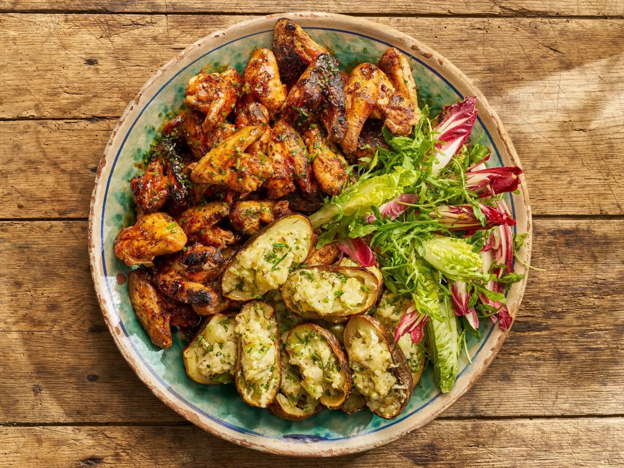 “Grilovaná kuřecí křidélka jsou sázka na jistotu a tahle fakt stojí za to. Napíchnou se na špízy, obalí v uzené paprice s česnekem, ugrilují se dozlatova a dokřupava, pak se pořádně promíchají v buffalo omáčce a podávají se s plněnými pečenými bramborami. Prostě ideální grilovačka.”