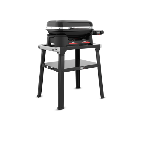 Užijte si zábavu a vychutnejte si skvělou chuť grilování na dřevěném uhlí bez otevřeného plamene na chytrém elektrickém venkovním grilu se stojanem Lumin® s digitálním ovladačem a příslušenstvím.