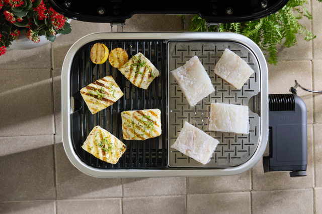 Připojte jej do zásuvky na terase nebo zahradě a nastavte přesnou teplotu na grilu nebo na chytrém telefonu pomocí aplikace Weber Connect®. Zahřeje se za 15 minut a dosáhne teploty přes 315 °C, aby se na mase a mořských plodech vytvořila chutná grilovací mřížka.
