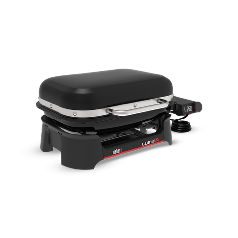 Užijte si zábavu a vychutnejte si skvělou chuť grilování na dřevěném uhlí bez otevřeného plamene na chytrém elektrickém venkovním grilu Lumin® s digitálním ovladačem a příslušenstvím.