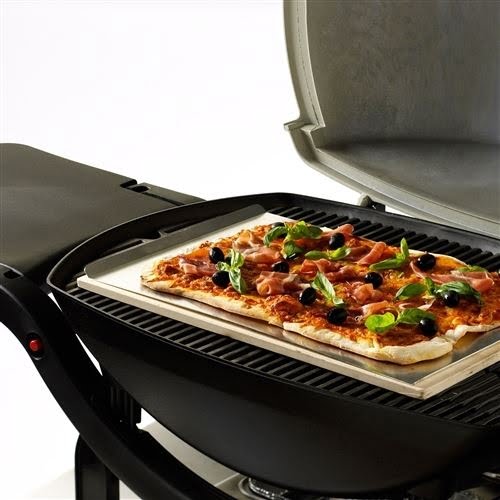 Tento žáruvzdorný kámen na pizzu se umístí na gril pro lahodnou čerstvou pizzu.