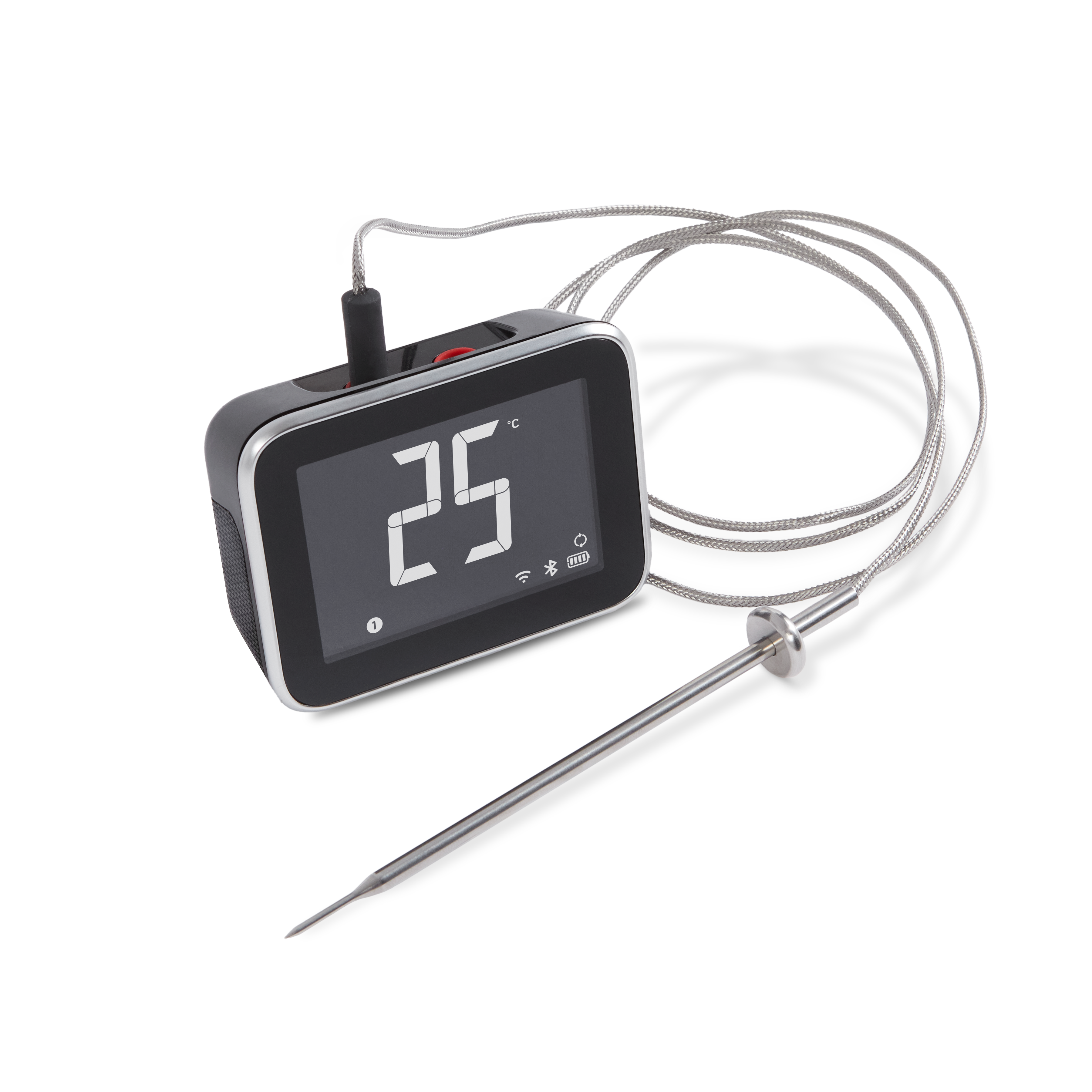 Umístěte tento jasný LCD displej do blízkosti grilu a připojte až 4 jehly na měření teploty nebo čidla, abyste mohli sledovat dobu grilování a vnitřní teplotu masa, ryb a mořských plodů. Nebo se vzdalte od grilu a zobrazte je na svém chytrém telefonu.